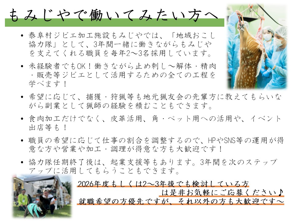 南信州 “泰阜村(やすおかむら)”にできた、野生獣肉加工施設です。